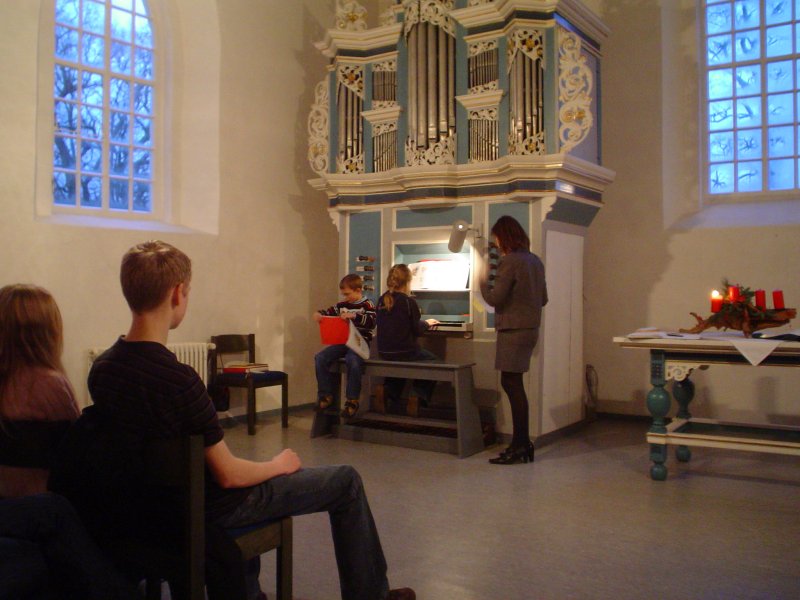 die Schüler aus Jennelt und Loppersum teil. An der Orgel sitzt Timo