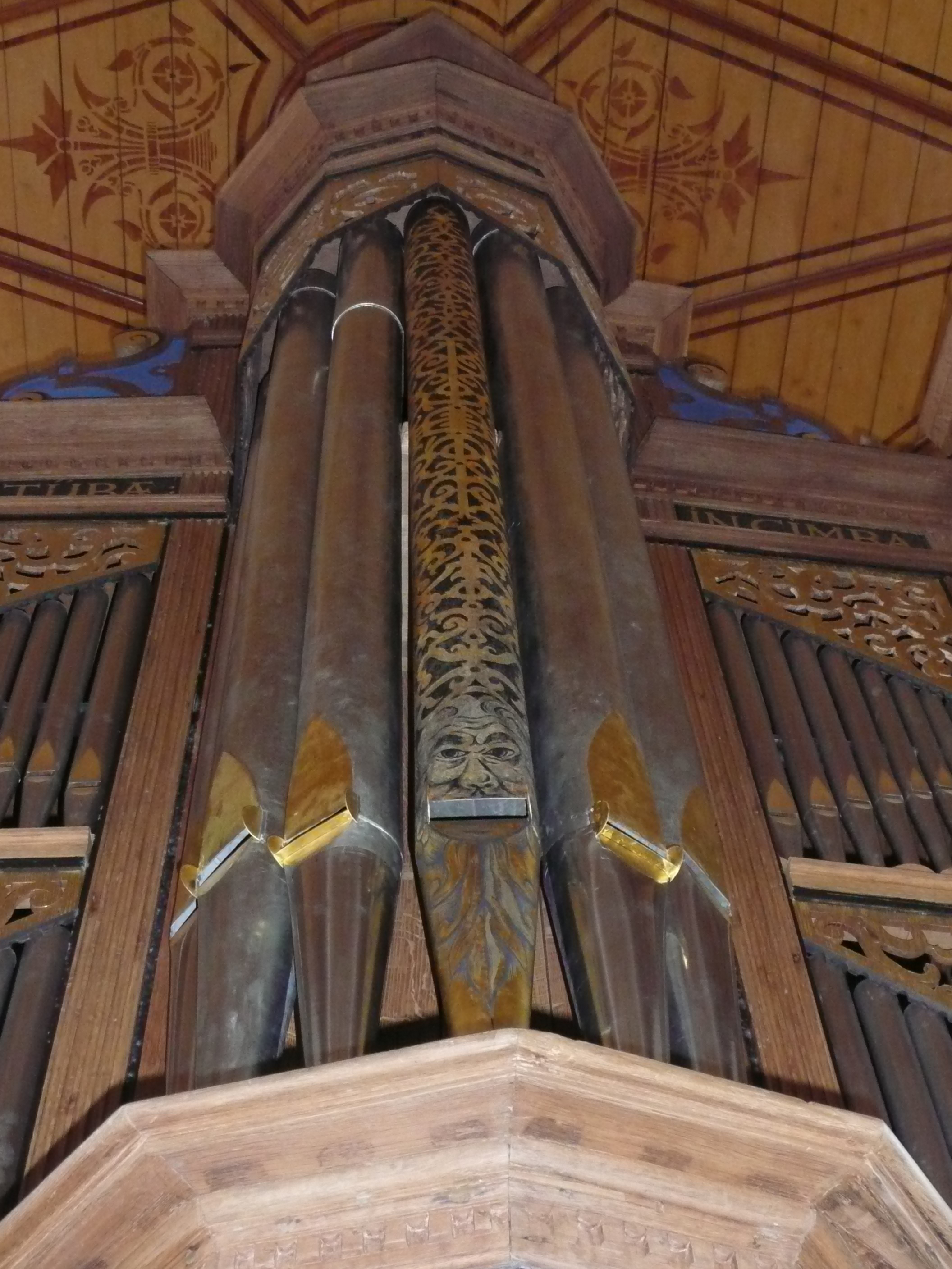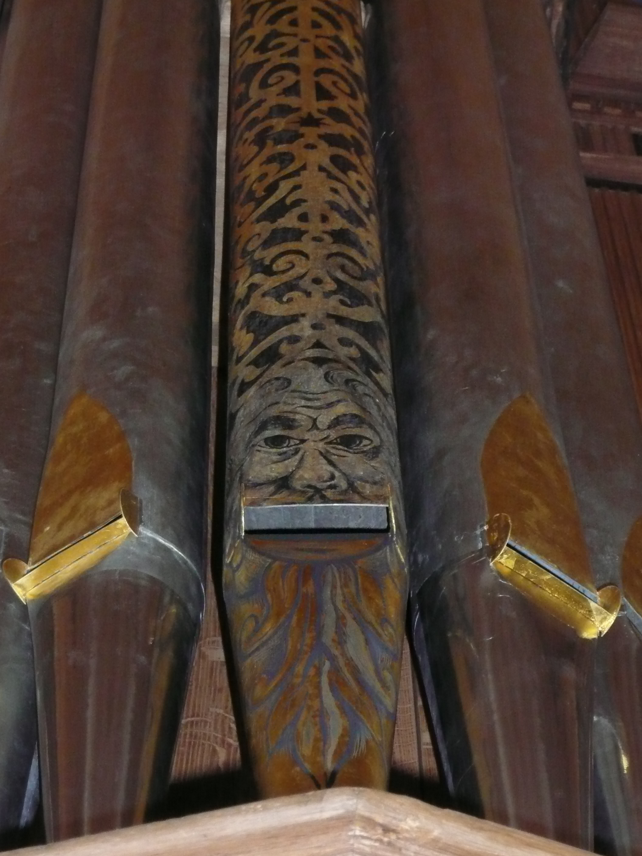auch die Verzierung einzelner Pfeifen z. B. mit menschlichen Gesichtern. Auf diese Weise wird der